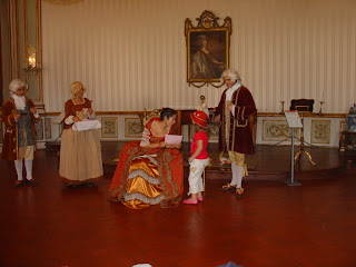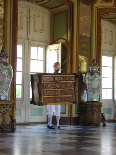 Após árduo trabalho para encontrarmos o sitio certo de cada móvel, a princesa recebeu-nos em audiência, cumprimentou-nos, aceitou os nossos projectos de mobiliario e ainda dançou um minuete com o seu Mestre de Cerimónias para nós assistirmos. Quanta honra!